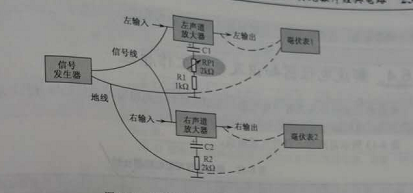 立體聲平衡調(diào)整方法:給左右聲道輸入適當(dāng)?shù)南嗤笮〉臏y試信號(hào)(一般特定頻率的正弦信號(hào),有信號(hào)發(fā)生器提供),如圖2所示,在左、右聲道輸出端分別街上毫伏表,調(diào)整平衡貼片可調(diào)電阻RP1,使兩個(gè)聲道輸出信號(hào)幅度大小相等。
